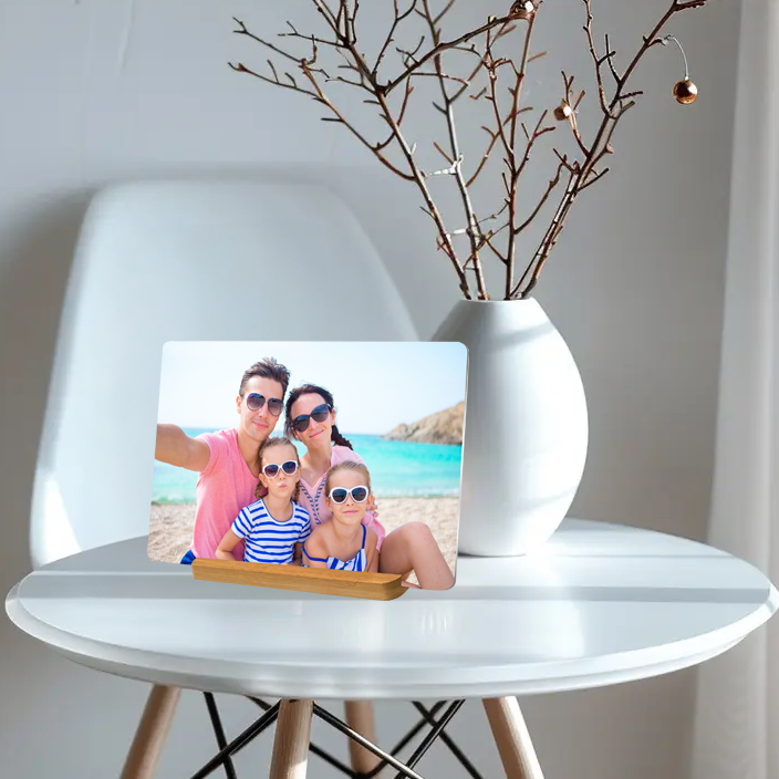I ordered a custom metal photo print with the bamboo base as a birthday gift for my mom, and she absolutely loved it! The print quality is sharp, colors are vivid, and the bamboo stand gives it a natural, elegant touch. Highly recommend for meaningful gifts.